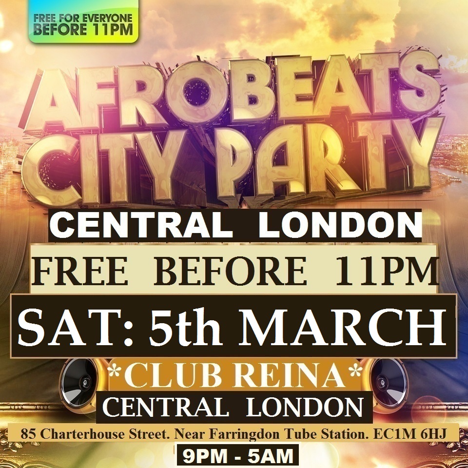 ★AFROBEATS CITY PARTY★ ----(CENTRAL LONDON)---- ----------------------------- ★FREE BEFORE 11PM★ ----------------------------- **SAT: 5th MARCH, 2016 @ CLUB REINA ( CENTRAL LONDON - NEAR ...