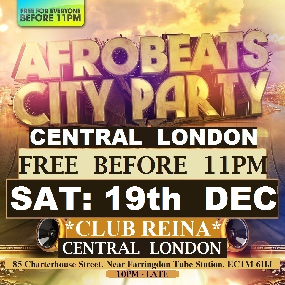 ★AFROBEATS CITY PARTY★ (CENTRAL LONDON) ----------------------------- ★FREE BEFORE 11PM★ ----------------------------- **SAT: 19th DECEMBER** ★FREE BEFORE 11PM★ @ CLUB REINA. (NEAR FARRING...